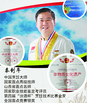 秦創(chuàng)年,山西運城名廚,高級烹調(diào)師、中式面點高級技師,運城工學(xué)院烹飪班講師、運城第一職中烹飪班講師,關(guān)鄉(xiāng)大刀面非物質(zhì)文化遺產(chǎn)傳承人,陪伴美食·秦創(chuàng)年美食工作室創(chuàng)始人。從廚30余年,曾獲得“面點名師”、“優(yōu)秀廚師”等眾多榮譽稱號。